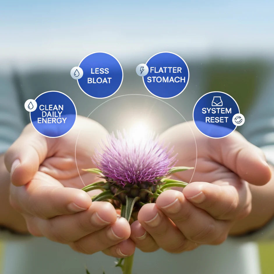 The bloat, the fatigue, the heavy gut—it’s not age. It’s years of buildup your system can’t clear. Herla Milk Thistle starts your body’s natural power wash, so you feel lighter, younger, and full of energy again.